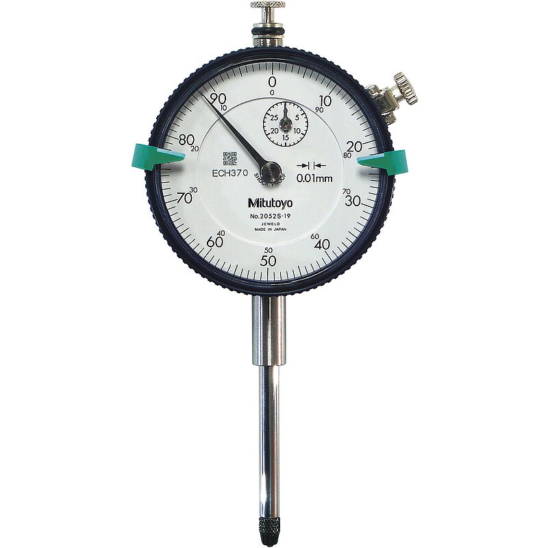 Mit Stoßschutz, edelsteingelagert, gedämpften Endpunkt und fortlaufende Skala, Außenring Ø 57 mm. 1 Zeigerumdrehung = 1 mm. Entspricht DIN EN ISO 463 in Verbindung mit DIN 878.