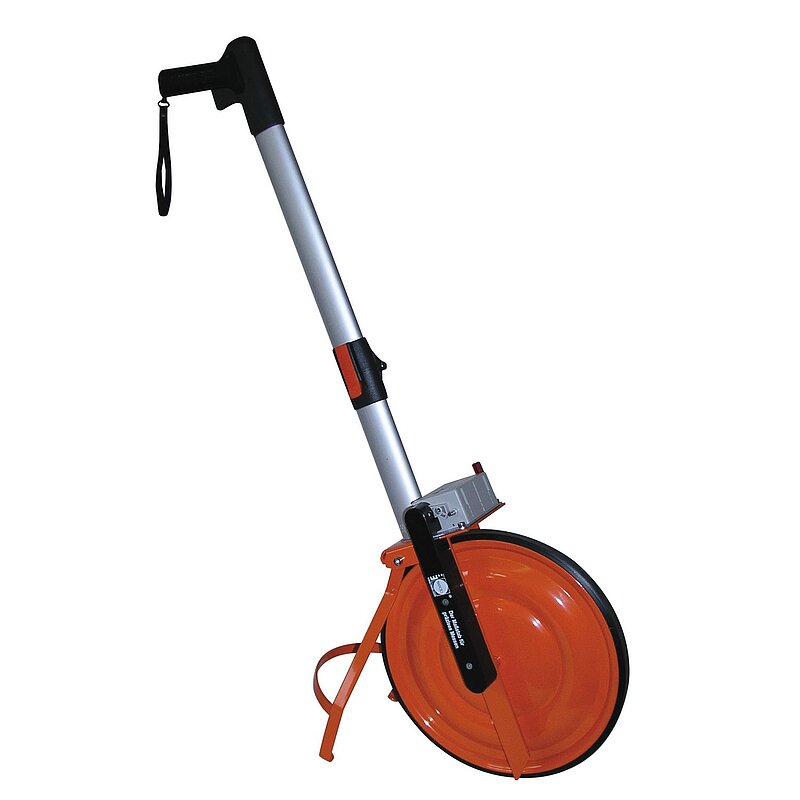 Dank der engen Fertigungstoleranzen des Präzisionsrads und des qualitativ hochwertigen Zählwerks erreicht das Messrad eine Genauigkeit von ± 0,02%. Dies entspricht einem max. Fehler von ± 2 cm auf einer Strecke von 100 m. Zählwerk in cm- Auflösung, stoßsicher über dem Laufrad montiert und wird mit einem Zahnriemen angetrieben, Nullstellung erfolgt mit Rückstellhebel, Feststellbremse im Abstellbügel integriert, ergonomischer Pistolengriff, seitlich wegklappbare Führungsstange aus Aluminium. Radumfang: 1 m,
