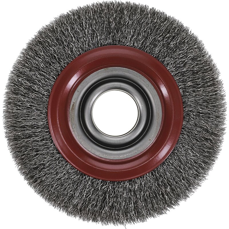 Mehrreihige Rundbürste mit gewelltem Draht in Industriequalität zur Aufnahme auf stationäre Maschinen. Für Werkbankschleifer oder Tischentgratern zum Entrosten, Entlacken, Reinigen, Aufrauen oder Entgraten.