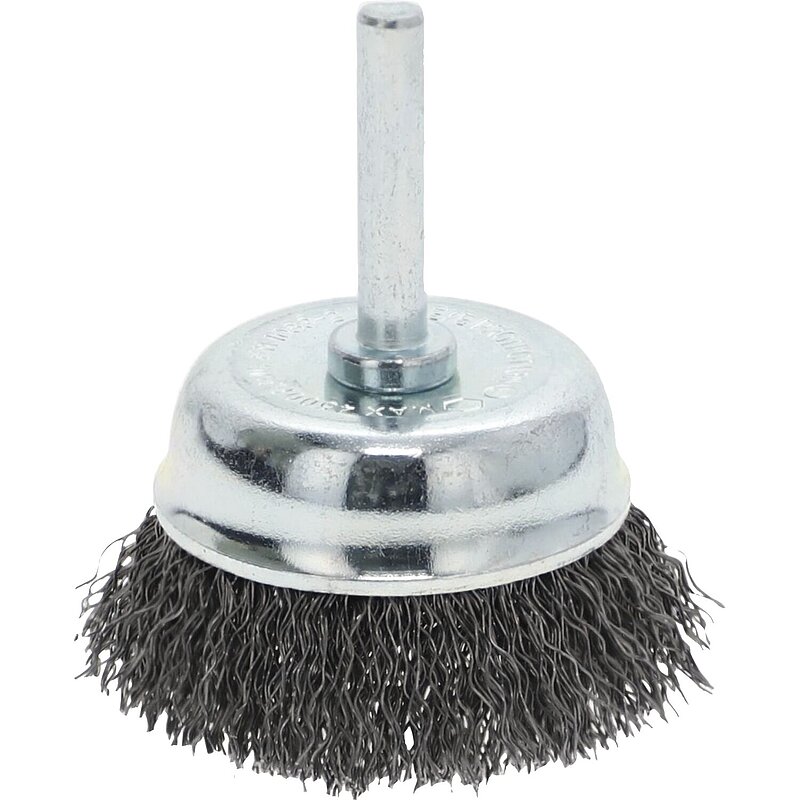 Gewellte Topfbürste in Handwerkerqualität für den Einsatz auf Bohrmaschinen. Zum Entlacken, Entrosten von Flächen.