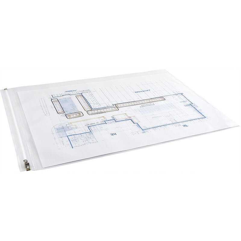Zum Schutz von Plänen und Unterlagen auf der Baustelle, aus umweltfreundlichen, transparentem Polyethylen (PE), reißfest, wasserdicht und wetterfest.