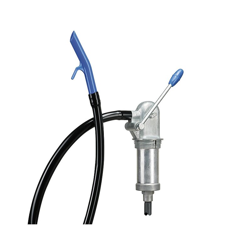 Für 220 l-Fässer, mit Gewindeadapter M 64 x 4, G2", mit PVC - Abgabeschlauch 1 m, mit Kunststoffauslauf, Pumpengehäuse aus schlagfestem Zinkdruckguss, geeignet für Öle, bis SAE 50, selbstschmierende, nicht aggressive Medien, Frostschutz unverdünnt, Heizöl, Diesel, Petroleum.