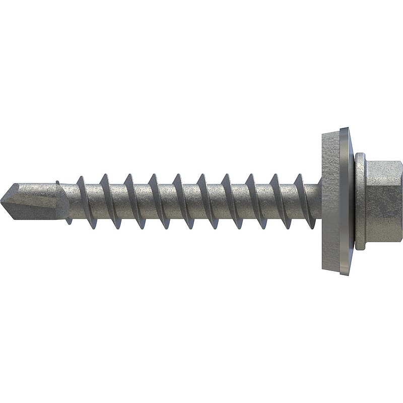 Bohrschraube zur Befestigung von Aluminium-, Stahlprofilblechen und Stehfalzhaltern auf Holz-, Aluminium- und Stahlunterkonstruktionen. Dachbau, Fassadenbau, Montage Stehfalzhalter