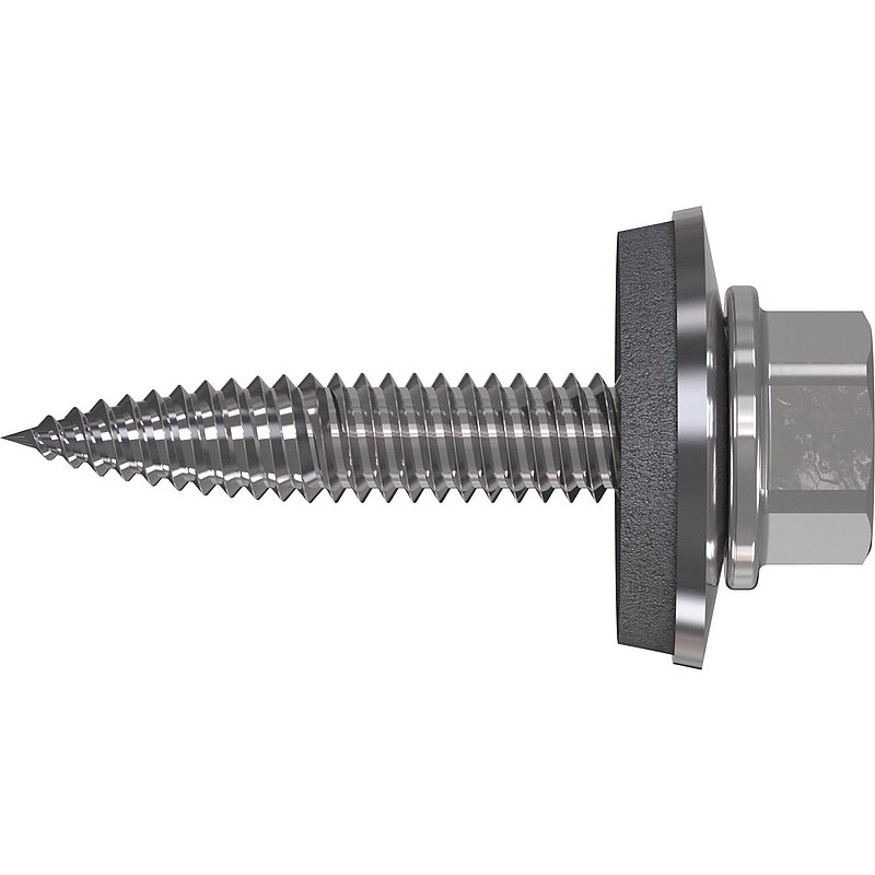 RP-T2, Dünnblechschraube, Sechskantkopf mit angepresster Scheibe.