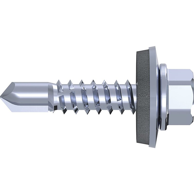 RS-K, Bohrschraube, Sechskantkopf mit angepresster Scheibe.