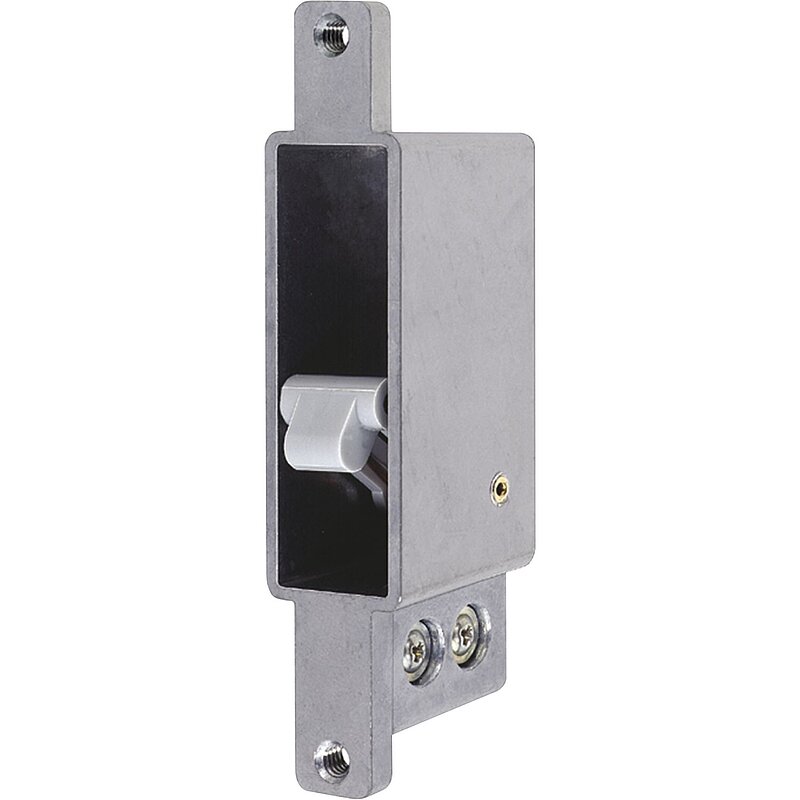 Geschlossene Form für Stahlzargen und Profile, dadurch ist der Profilinnenraum nicht sichtbar. Der Riegelschaltkontakt wird zuerst auf das Schließblech montiert, dann wird das Schließblech an der Zarge montiert.