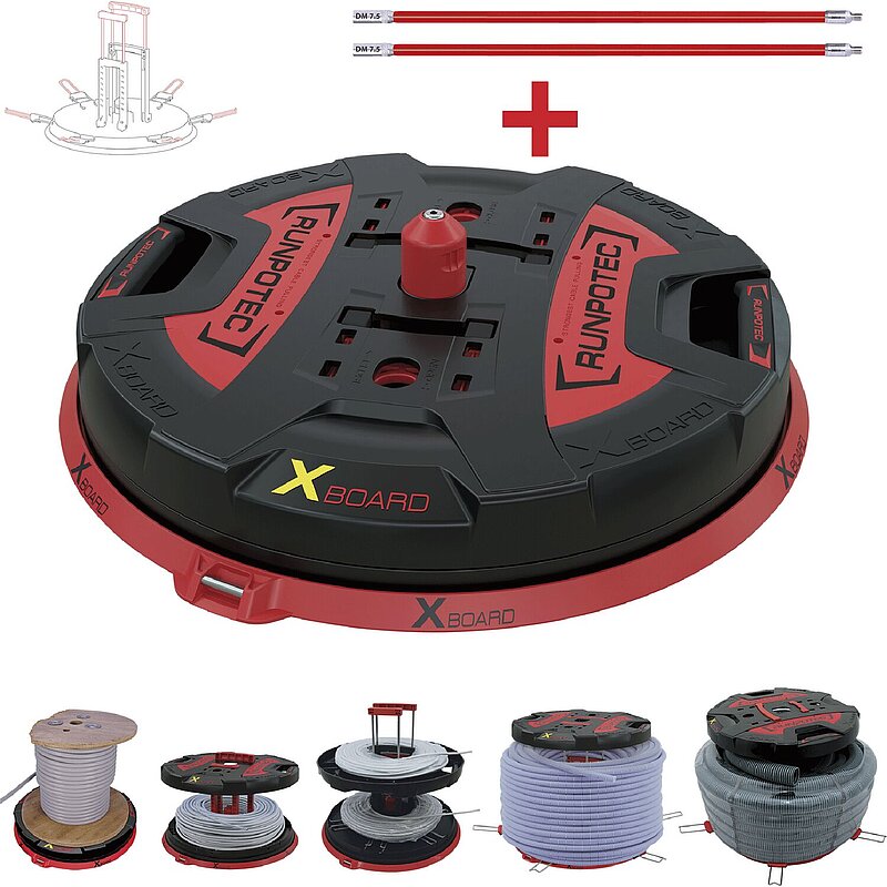 - Durch größeres Füllvolumen mittels Teleskopauszüge, sind größere Rohr-/Kabelbünde abrollbar