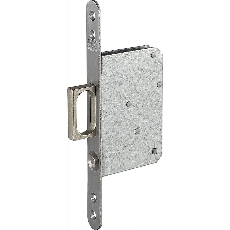 Schiebetürschloss mit Stirnziehgriff 117 x 75 x 15,5 mm, rund, Edelstahl