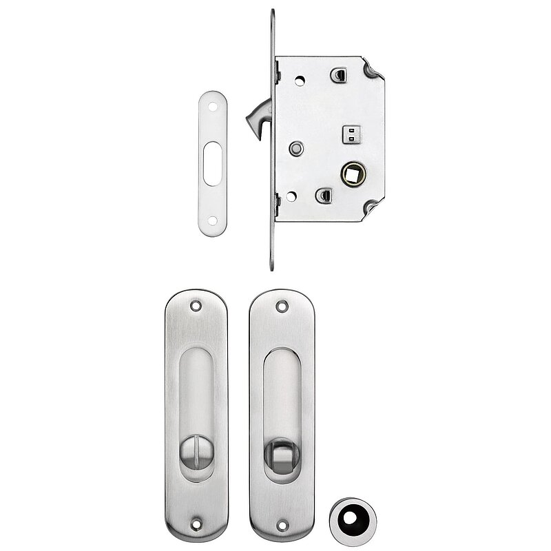 Schiebetürschloss- u. Griffset, DM 50, Nuß 8 mm, Messing verchromt matt