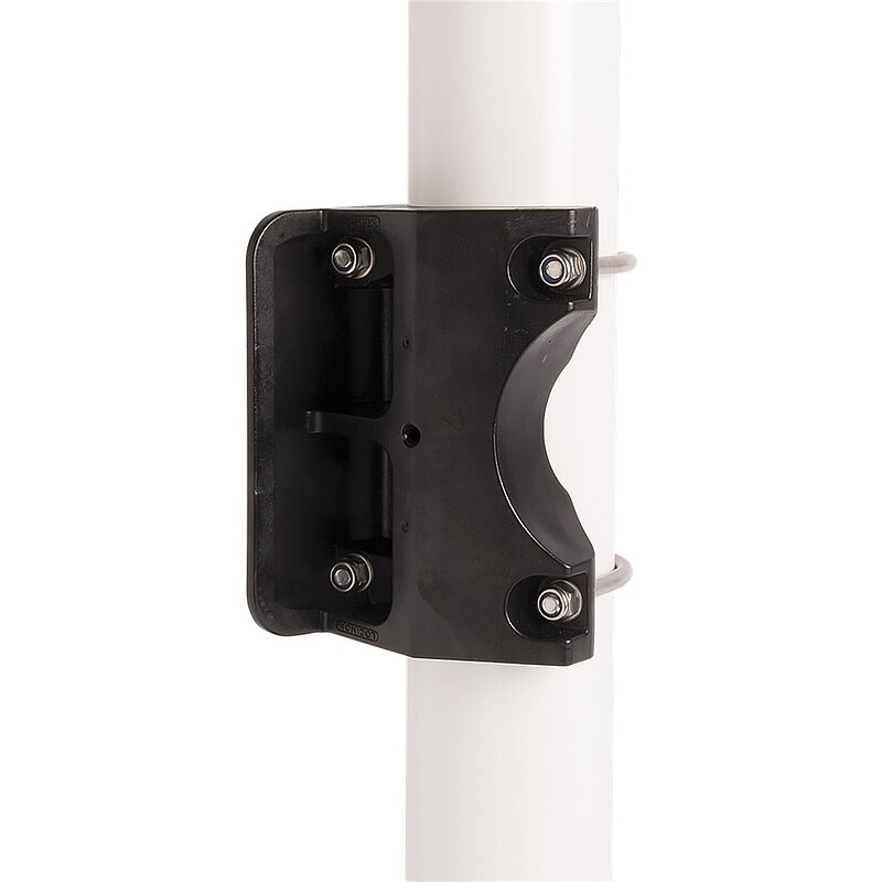 Polyamid Anschlag für Gartentore. Die Bügelbefestigung sorgt für eine einfache und schnelle Montage auf Rundprofilen. Für Torprofile 40 mm und Pfostenprofil 60 mm.