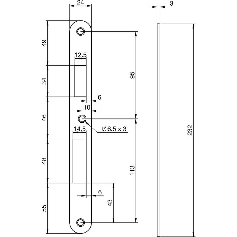 Schließblech EA 325 für Elektro-Mehrfachverriegelungsschlösser, 232x24x3 mm