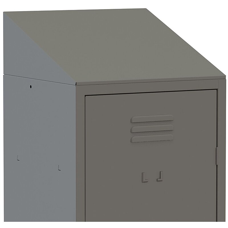 Schrägdach-Aufsatz hergestellt aus 6/10 dickem Stahl mit selbstzentrierenden Seitenwänden und dreifach gefalteten Anti-Schnitt-Kanten. Minimiert das Risiko, dass auf dem Dach abgelegte Dinge vergessen werden und der Putzaufwand ist deutlich geringer. Der Schrägdach-Aufsatz ist aus geschweißtem Stahlblech in Keilform auf 200 mm Höhe nach hinten gekantet und gepunktet, Pulverbeschichtung serienmäßig in RAL 7035 Lichtgrau.