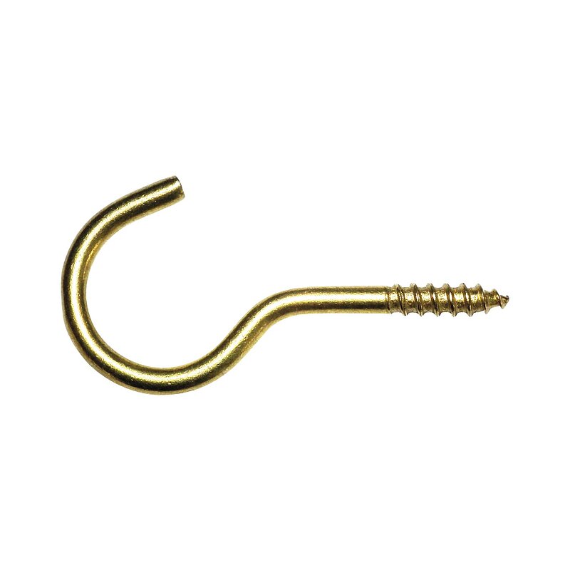 Schraubhaken mit Holzgewinde gebogen 2,3x20 Stahl vermessingt