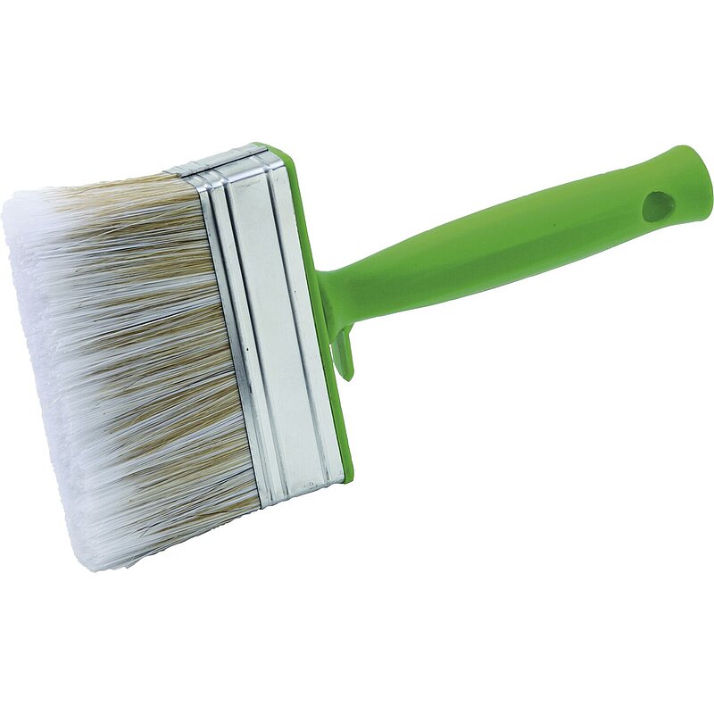 Mit heller Borste, Kunststoffgriff, Kunststoffkörper und Eimerhaken.
