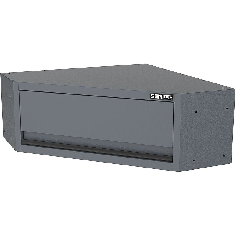 Hängeschrank aus hochwertigem Stahl mit einer robusten Pulverbeschichtung in Industriequalität. Mit schwarzem Schloss sowie schwarzer Aluminiumgriffleiste sowie einem Gasdruckdämpfer.