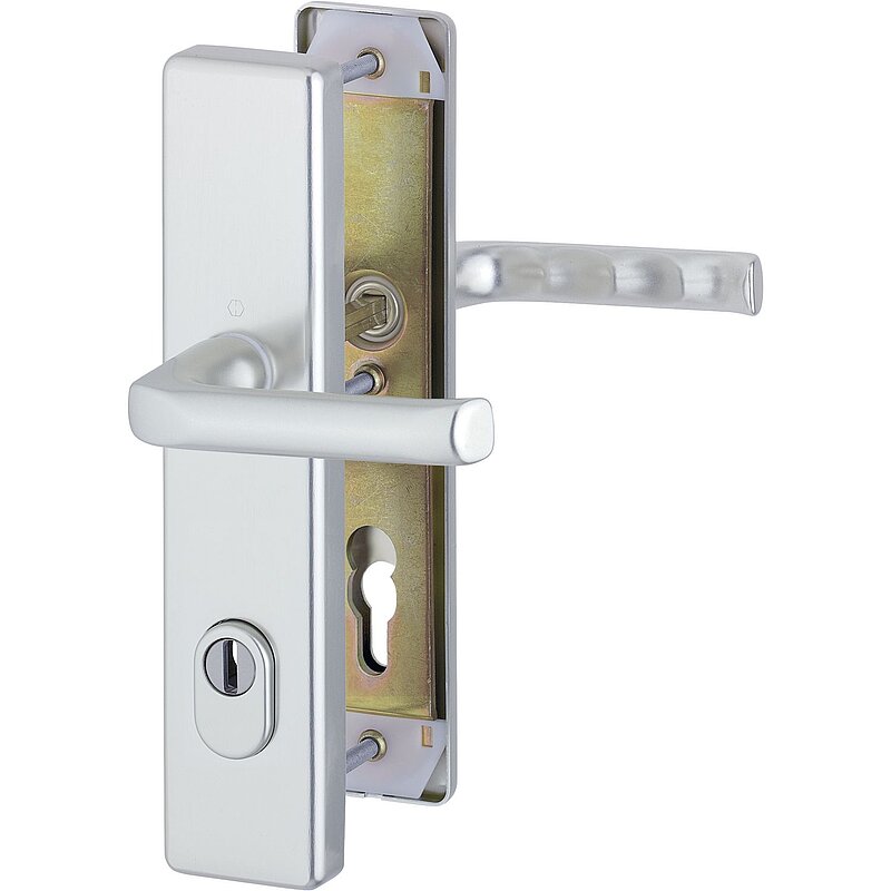 SH-Drückergarnitur LONDON-auf Schild PZ88, 67-77, mit Kzs., silber, RC3