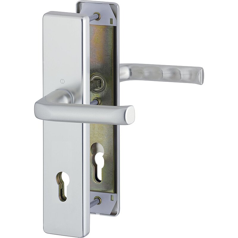 SH-Drückergarnitur LONDON-auf Schild PZ88, SST, ohne Kzs., 37-47, silber