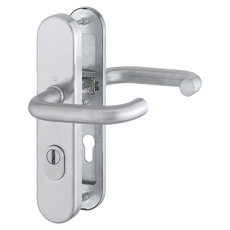 SH-Drückergarnitur PARIS-auf Schild PZ72, 37-47, mit Kzs., Edelstahl