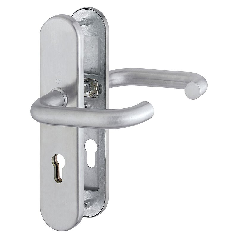 SH-Drückergarnitur PARIS-auf Schild PZ72, 37-47, ohne Kzs., Edelstahl