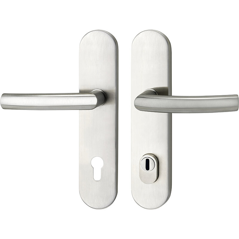 SH-Drückergarnitur RIGA-auf Schild PZ92, mit Kzs., Edelstahl