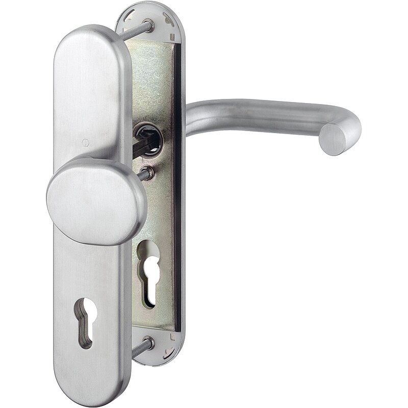 Drücker und Langschild lose, mit Hochhaltefeder