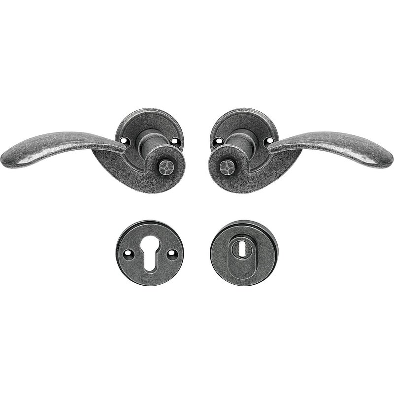 Sicherheits-Drueckergarnitur STUBAI auf Rosette,verzinkt schwarz hell passiviert