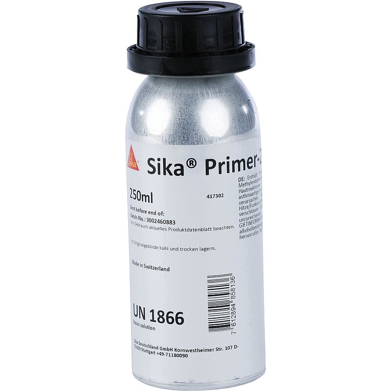 Pigmentierter Voranstrich für Sikaflex PU-Kleb- und Dichtstoffen auf Glas, keramikbeschichtetem Glas, Kunststoffen, diversen Metallen sowie für die Ausbesserung von kleinen Lackschäden.