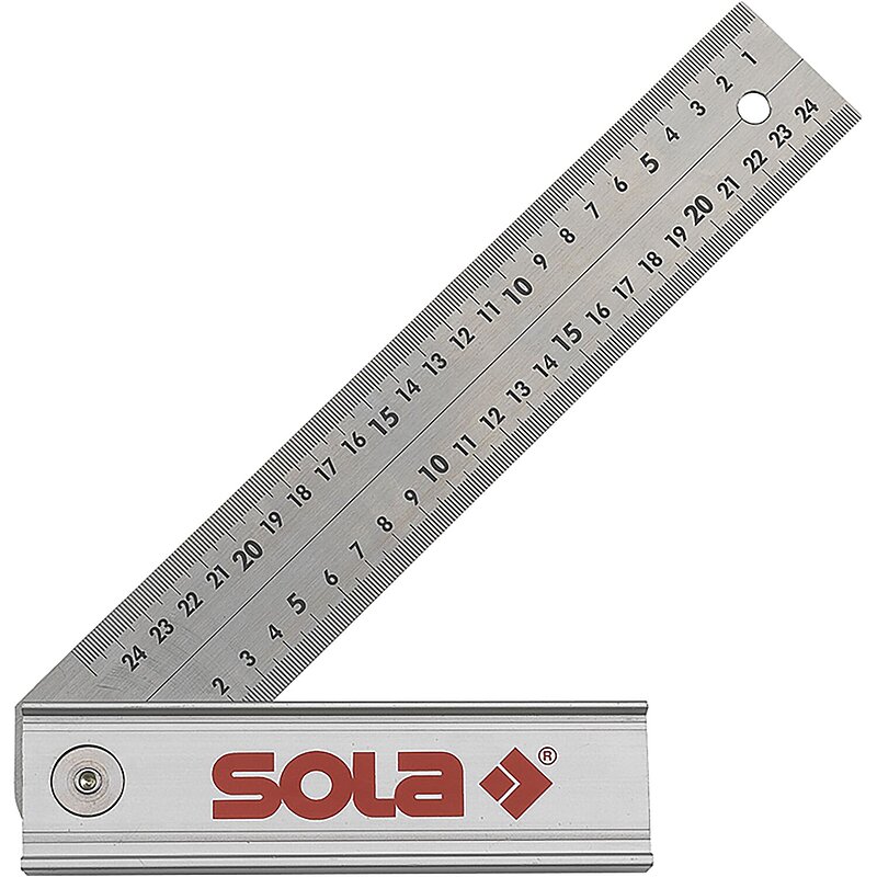Der Winkel verfügt über einen leichten, robusten Aluminium-Griff und eine besonders widerstandsfähige, rostfreie Federstahlklinge mit drei arretierbare Positionen – 45°, 90° und 135°.