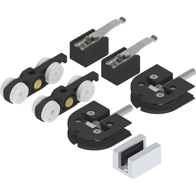 SOLIDO 100 Beschlagset Glas Punktbefestigung 8-10,76 mm Führung silber eloxiert