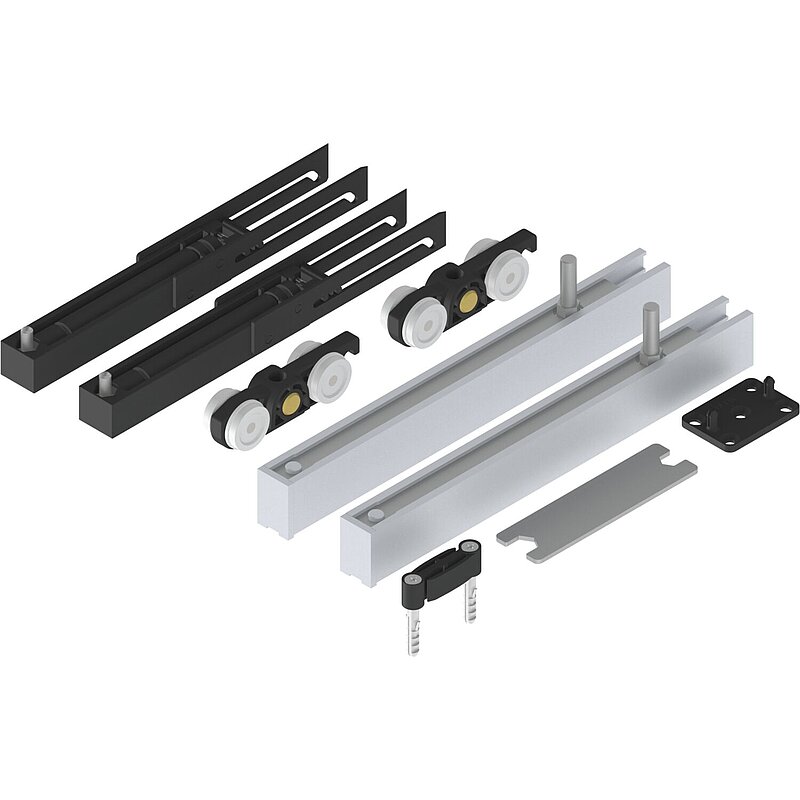 Für minimale Einbauhöhe. Ohne Laufschiene, mit Einzugsdämpfung beidseitig.