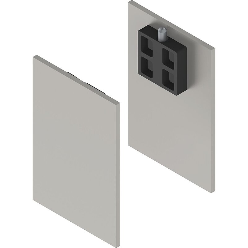 In Kombination mit Laufschiene, Abstandsprofil 9 mm innen und Blende H/G einseitig.