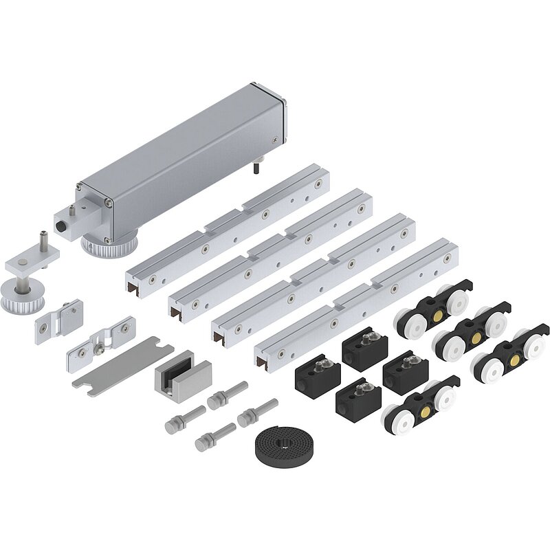 SOLIDO ECO Schiebetürantriebset 2-flg. für Glas ESG/VSG 8-10,76mm je 80kg silber
