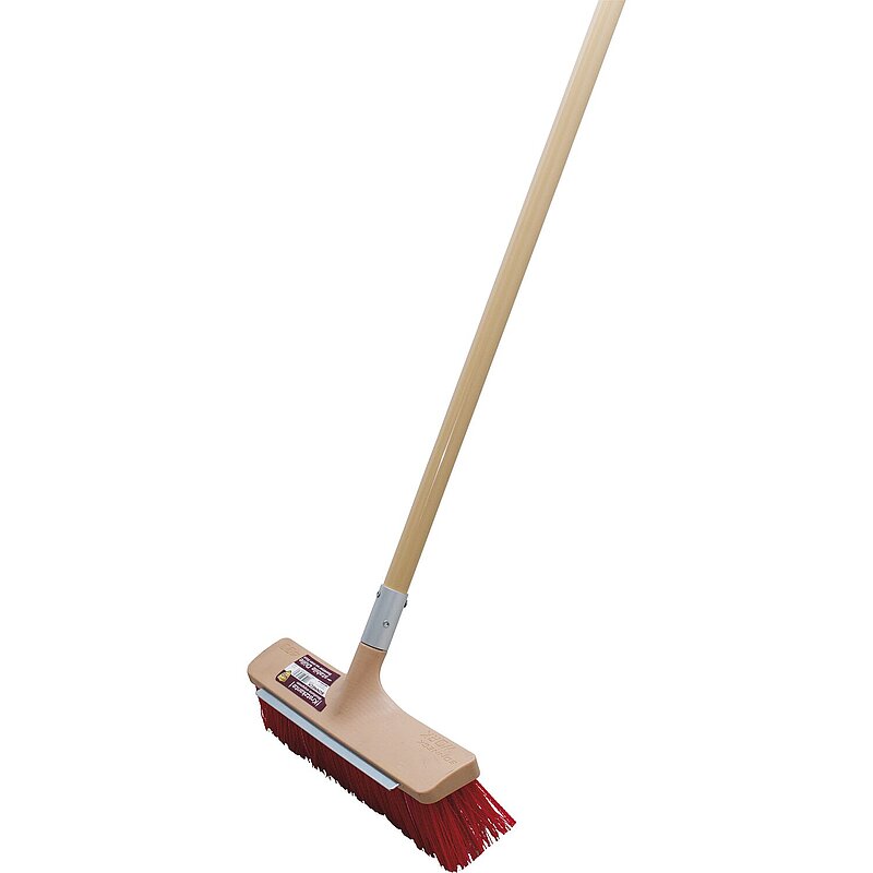 Besen und Tülle aus einem Guss, daher beste Verbinung von Besen und Stiel. Qualitäts-Kunstfaserborsten für lange Lebensdauer. Mit Metallkratzkante, daher perfekt für Sommer und Wintereinsatz.
