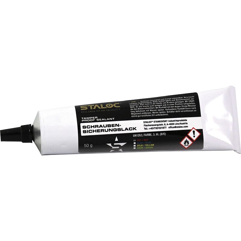 STALOC Schraubensicherung dient zur optischen Kontrolle an kritischen Schraubenverbindungen bzw. als Verplombung an elektronischen Bauteilen.