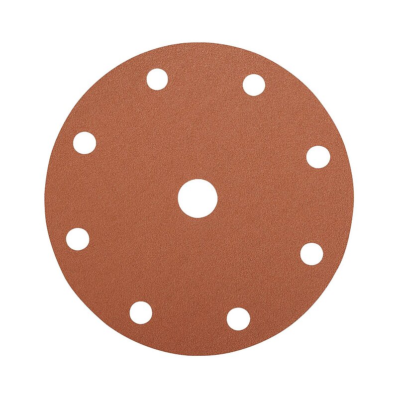 8+1 Löcher - flexibles, latexhaltiges Schleifpapier mit Korund-Schleifkorn, Stearatbeschichtung gegen Zusetzen. Anwendung: Holz und Metall.