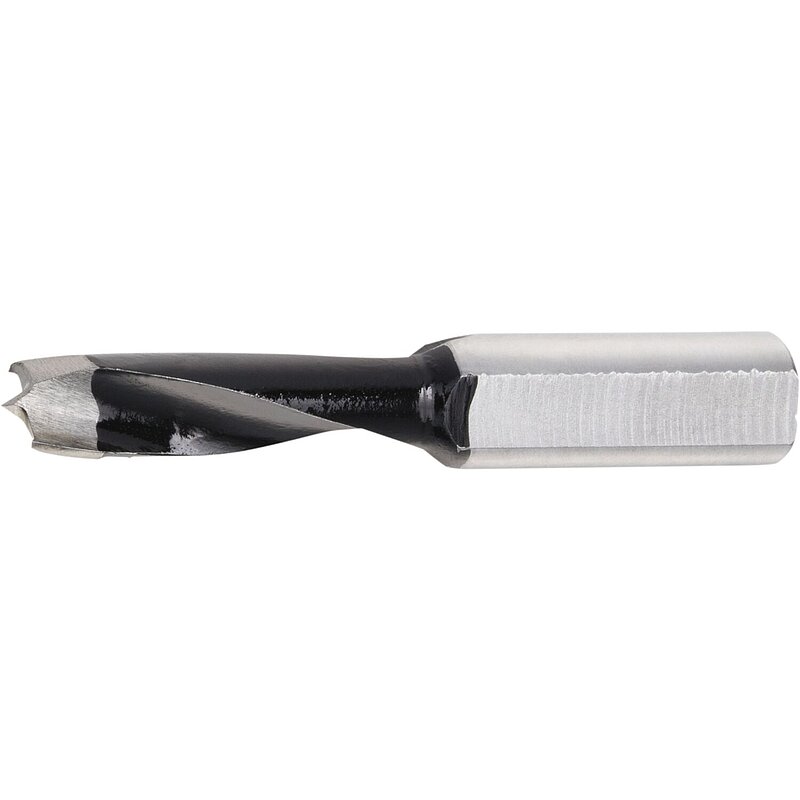 - Spezialbohrer für Dübelbohrautomaten für Sacklöcher mit Zentrierspitze, 2 Vorschneidern und 2 Hauptschneiden für sauberen Lochrand an der Werkstückoberfläche