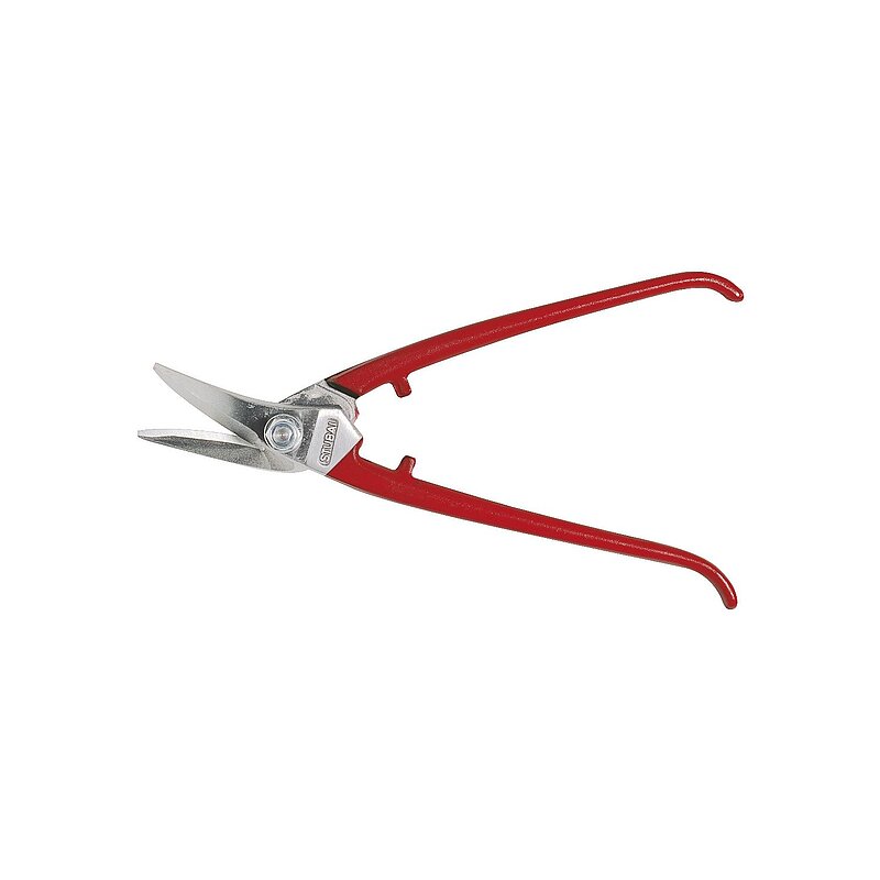 Spezialschere für Kurvenschnitte und lange durchlaufende Schnitte, Kopf poliert, Schneiden induktiv gehärtet, Härte: 60-62 HRC.