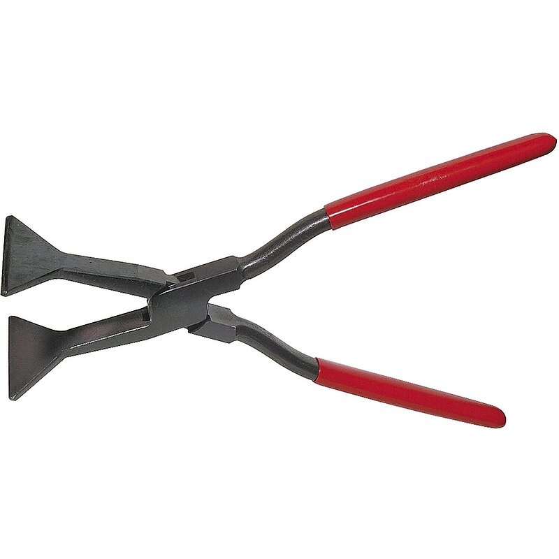 Spezialfalzzange geschmiedet, mit durchgestecktem Gewerbe. Backen und Maul vergütet. Kanten leicht abgerundet. Schenkel rot kunststoffbeschichtet. Anwendbar bei hohen Falzen. Die spitzen Winkel am Zangenmaul eignen sich gut zum Eckfalzen.