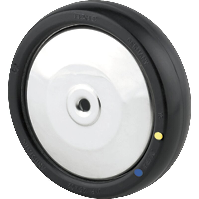 Radkörper aus Zinkdruckguss, Lauffläche aus schwarzem Vollgummi, kontaktverfärbungsfrei, elektrisch leitfähig, mit Fadenschutz, Präzisionskugellager, abgedichtet, temperaturbeständig - 20 bis + 85 °C