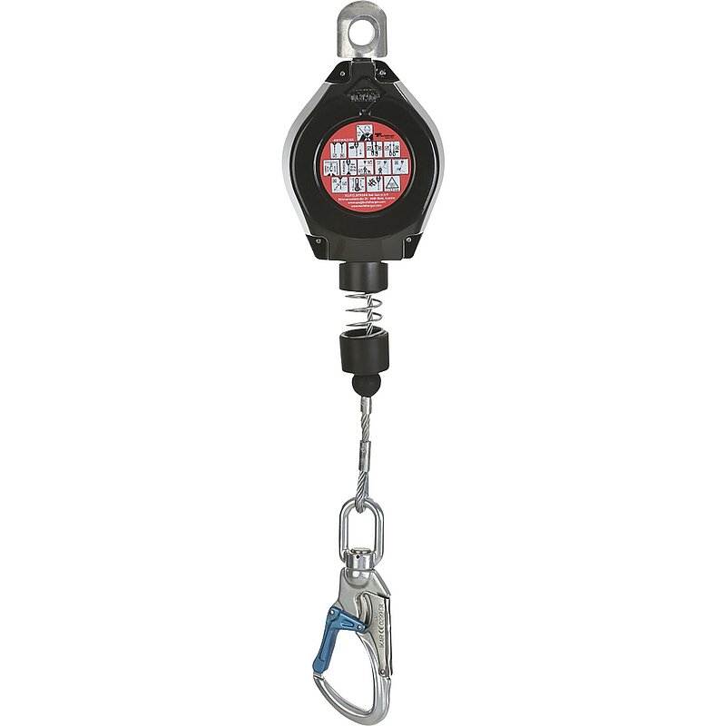 Ausführung: Aluminiumgehäuse - robust und sehr leicht, verzinktes Stahlseil – extrem widerstandsfähig und kantengeprüft, Alu-Attack-Karabiner am Seilende - einfaches Handling, Drehwirbel am Gehäuse - kein Verdrehen des Bandes möglich, energieabsorbierende Funktion integriert - Geringste Krafteinwirkung auf, den menschlichen Körper beim Sturz, mit Abstand die kleinste Auffangstrecke, verwendbar in jeder Lage ohne zusätzliche Mittel, Sturzanzeiger am Drehwirbel des Karabiners.