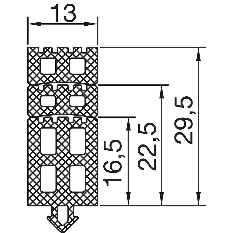 THYSSENKRUPP Syprotech Seitenabschlussdichtung 13/30, L=7000 mm, EPDM schwarz