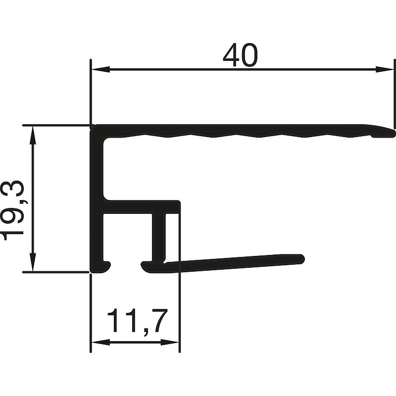 Verstärkte Ausführung als stabiler Plattenabschluss, mit integrierter Tropfnase, mit spezieller Dichtung für horizontalen Plattenstoß verwendbar.
