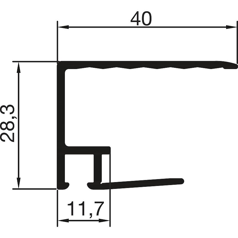 Verstärkte Ausführung als stabiler Plattenabschluss, mit integrierter Tropfnase, mit spezieller Dichtung für horizontalen Plattenstoß verwendbar.