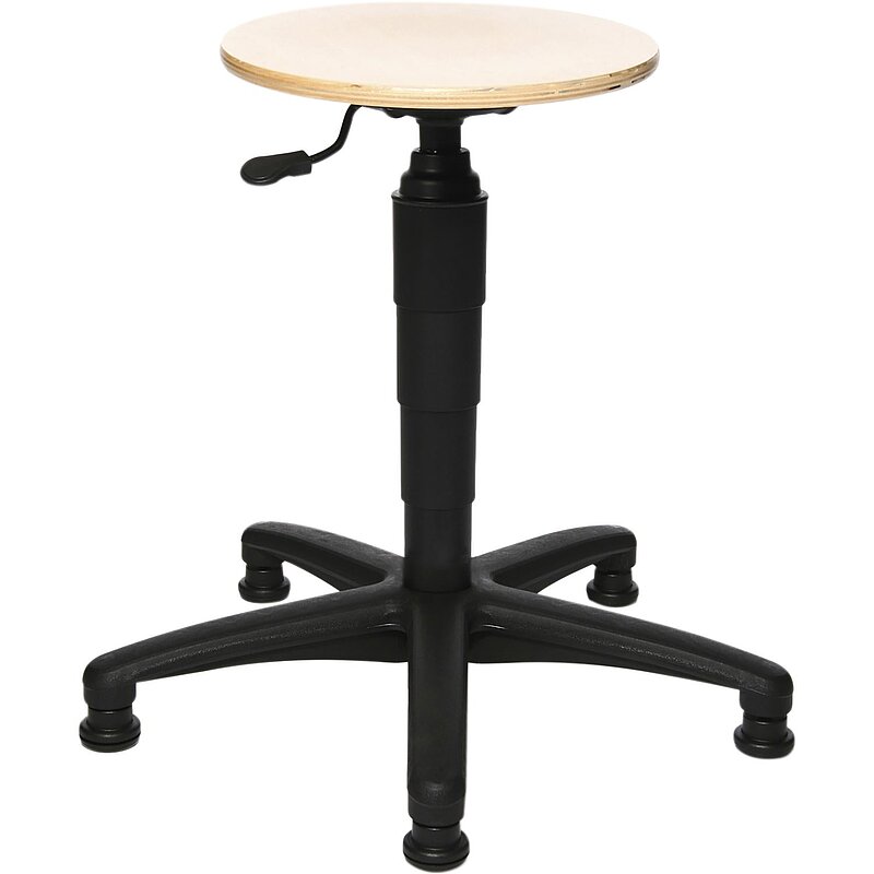 Höhenverstellung mittels Gasfeder. Mit Buchensitz, schichtholzverleimt.