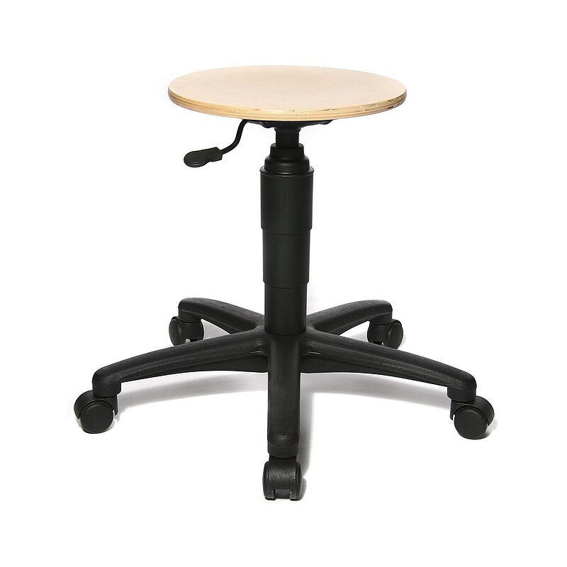 Höhenverstellung mittels Gasfeder. Mit Buchensitz, schichtholzverleimt.