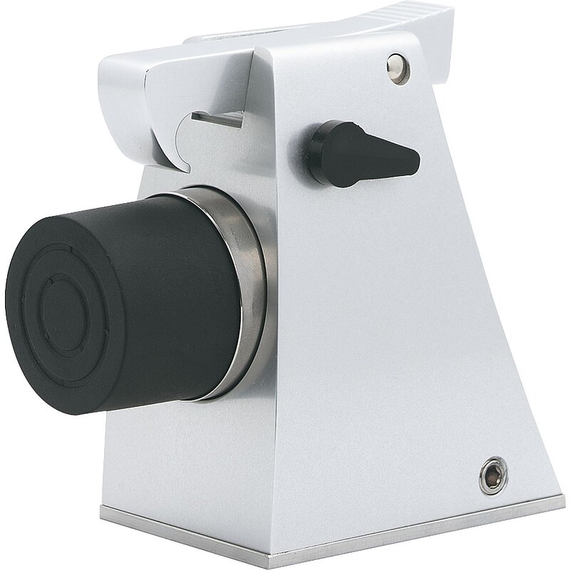 Zum Arretieren wird die Tür bis zum Einrasten des Fanghakens gegen den Feststeller geführt. Lösen erfolgt durch Betätigen des Fanghakens bei gleichzeitigem Andrücken der Tür gegen den Feststeller. Der Ausschalthebel von Stellung A nach Stellung B gebracht, bewirkt ein Aufheben der Arretierung. Der Feststeller hat so nur noch die Funktion eines gefederten Puffers.