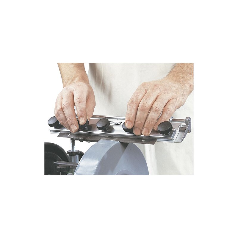 Vorrichtung für Maschinenhobelmesser. Für HSS-Messer unbeschränkter Länge, mind. 13 mm breit auch für Gehrungsstanzmaschinenmesser.