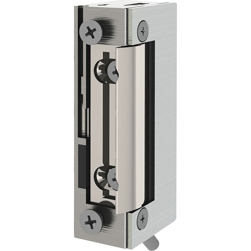 *Wechselarretierung: nach einem kurzen Stromimpuls entriegelt der Türöffner und bleibt solange mechanisch entriegelt, bis die Türe einmal aufgedrückt wird. Diese Art der Arretierungsfunktion aktiviert sich nach jedem Stromimpuls, unabhängig davon, ob die Türe offen steht oder zu ist.