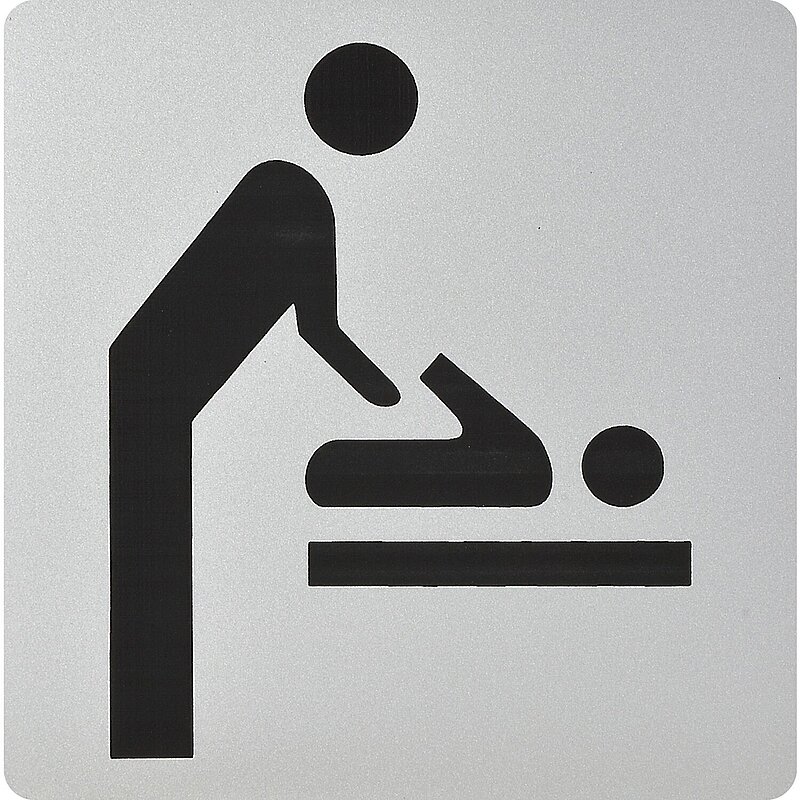 WC Symbol Wickelraum selbstklebend, 100 x 100 mm, Kunststoff alufarbig
