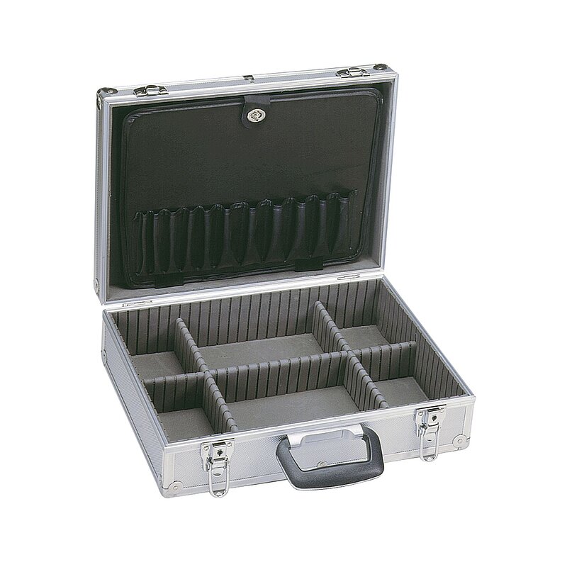 Ausstattung: herausnehmbare Werkzeugtafel mit 17 Einsteckfächern, Bodenschale mit verstellbarer Inneneinteilung.